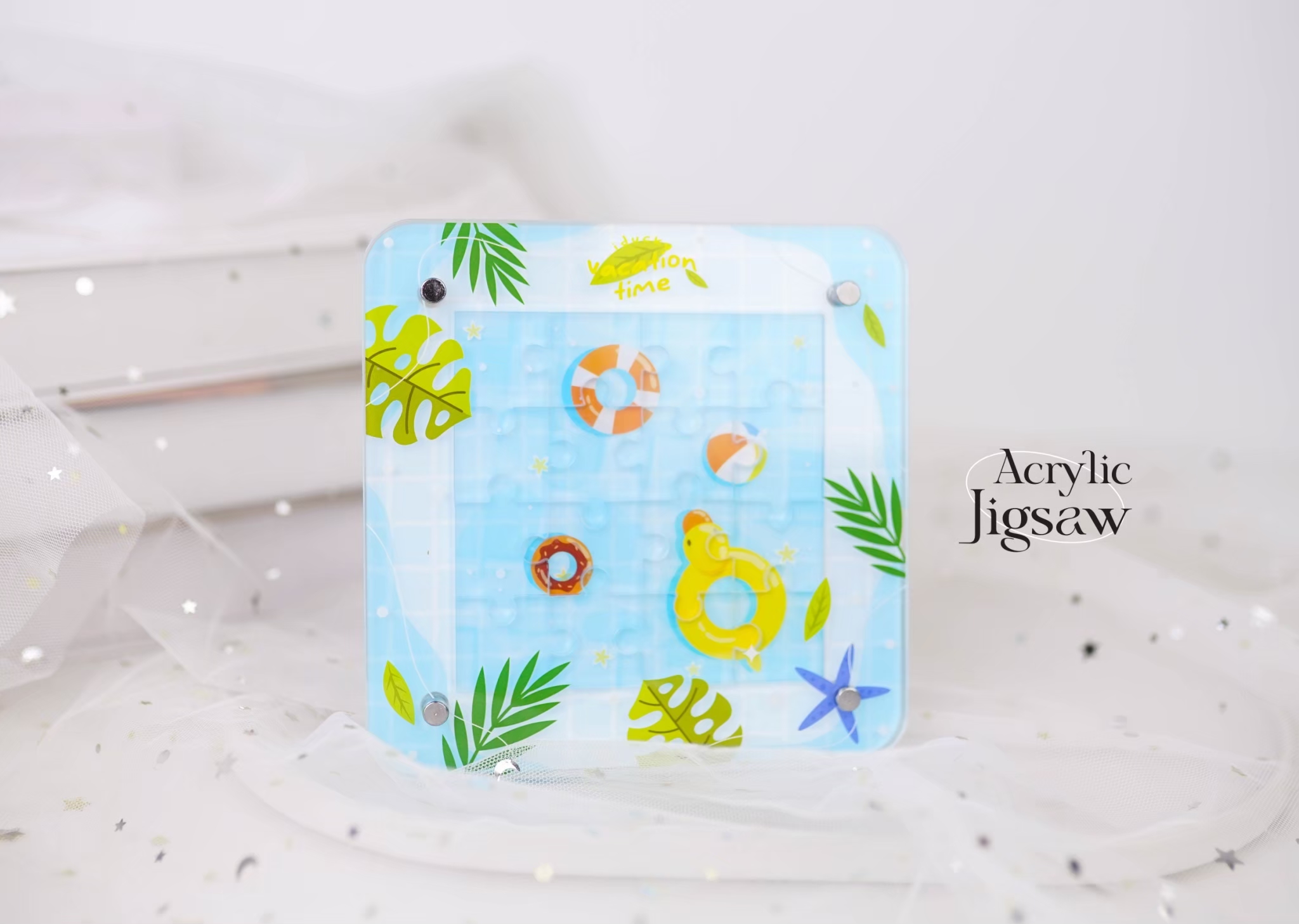 ลูกค้าสามารถออกแบบ รับผลิตกรอบรูปจิ๊กซอว์อะคริลิค ได้ตามแบบสไลต์ของลูกค้า สามารถส่งภาพ หรือ เลือกลายที่ร้านมาให้สกรีนได้ สั่งทำได้ งานพิมพ์คมชัด สีสด โดนน้ำได้ ติดทนนาน