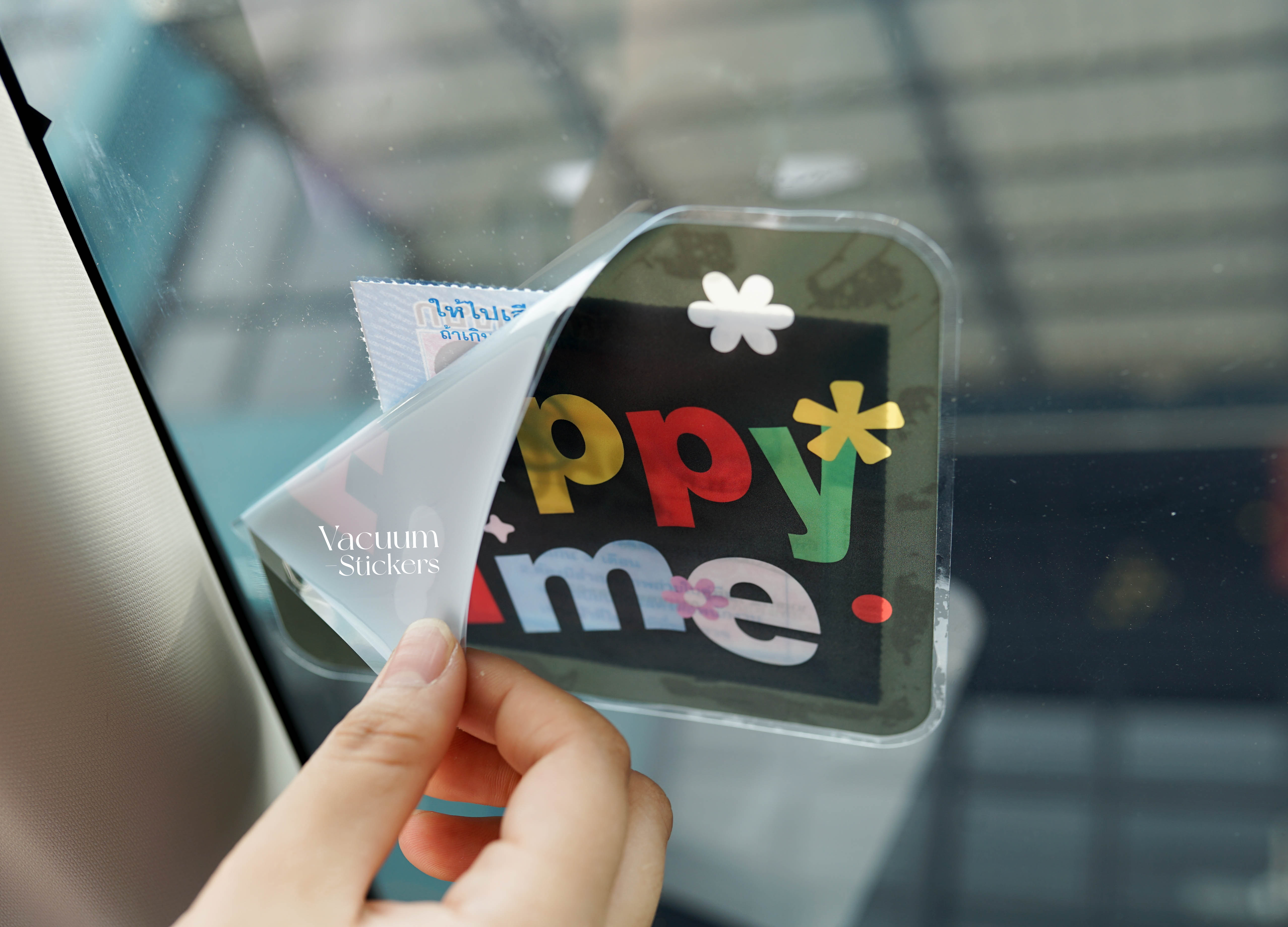 รับทำสติ๊กเกอร์สูญญากาศ ผลิตสติ๊กเกอร์สูญญากาศติดกระจก ไม่มีคราบกาว สามารถออกแบบลายเองได้!